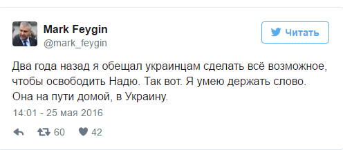 14:06 Савченко летит в Украину, говорит Марк Фейгин.