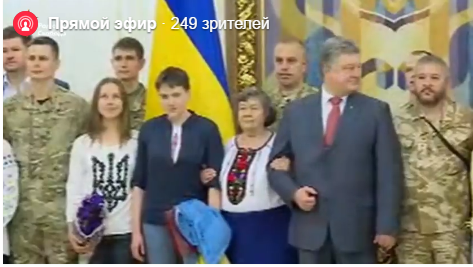 16:20 "Как мы вернули Надежду, так мы и вернем Донбасс", - говорит Порошенко.