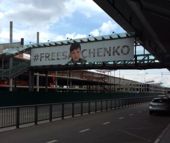 14:26 В Борисполе разместили баннер в поддержку Савченко. Хотя пока еще неясно, в какой аэропорт она прилетит.