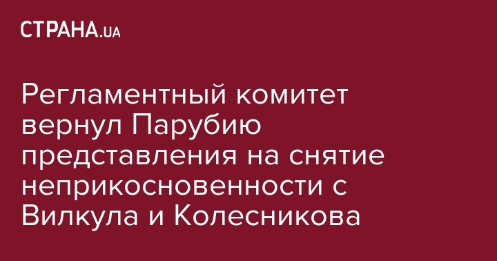 Регламентный комитет вернул Парубию представления на снятие неприкосновенности с Вилкула и Колесникова
