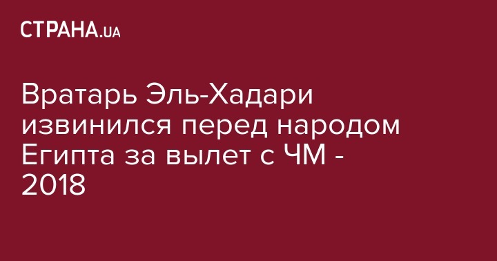 Сборная Египта после поражения от команды России (1 - 3), потеряла все шансы на выход из группы и первой покинет чемпионат мира по футболу - 2018. Вратарь "фараонов" Эссам Эль-Хадари после матча, который прошел вчера, 19 июня в Питере, извинился перед болельщиками за поражение.