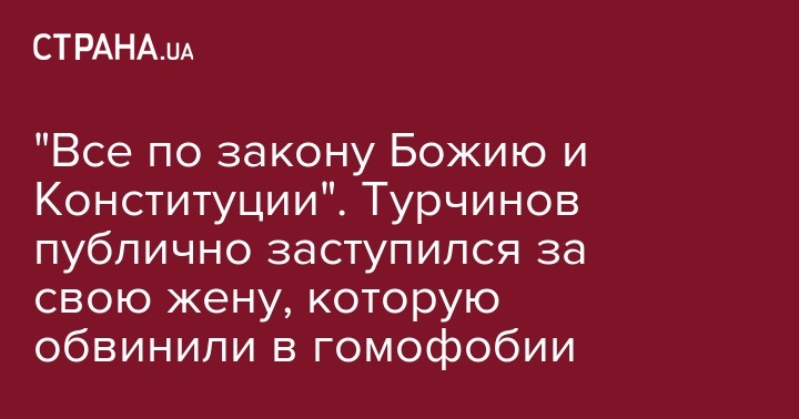 "Все по закону Божию и Конституции". Турчинов публично заступился за свою жену, которую обвинили в гомофобии