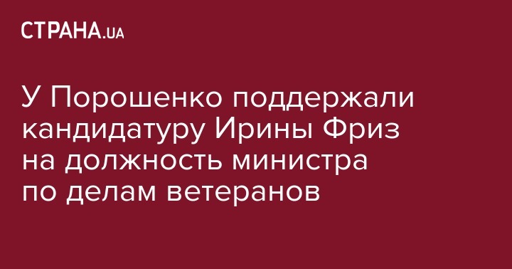 Фракция "Блок Петра Порошенко" поддержала кандидатуру Ирины Фриз на должность министра по делам ветеранов.