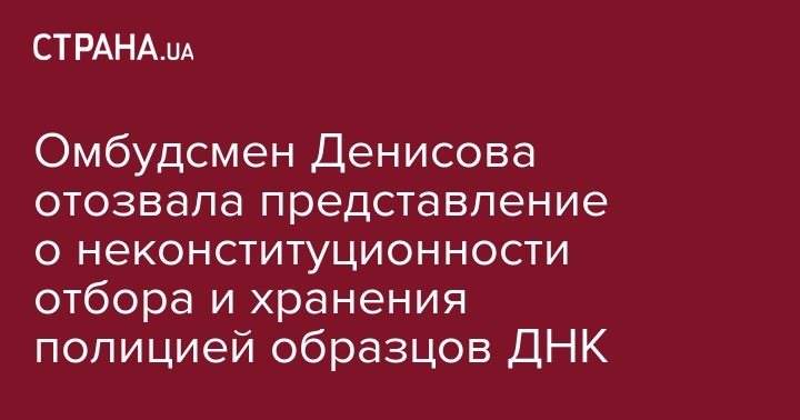Уполномоченный Рады по правам человека Людмила Денисова отозвала из Конституционного Суда представление о неконституционности полномочий полиции отбирать и хранить образцы ДНК граждан.
