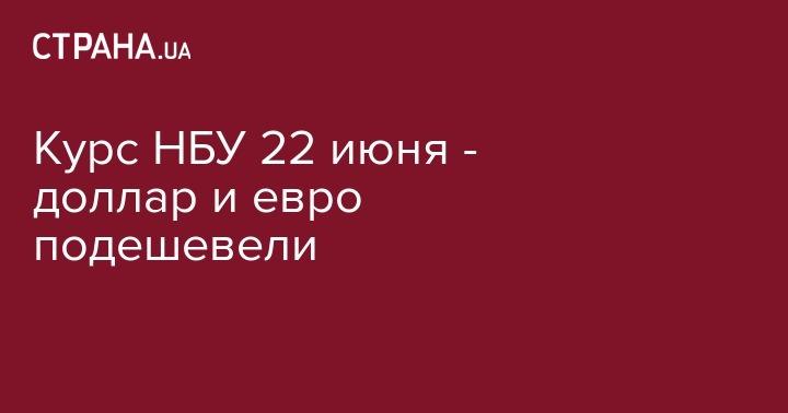 В пятницу, 22 июня, Национальный банк установил официальный курс гривны по отношению к иностранным валютам. По сравнению с предыдущим рабочим днем доллар и евро подешевели.