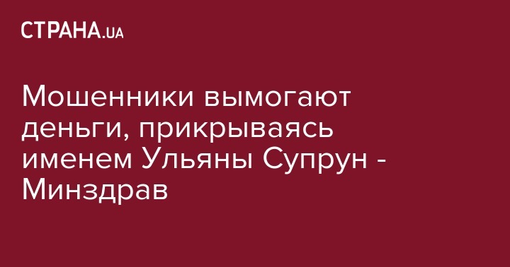 У руководителей медучреждений вымогают деньги люди, которые прикрываются именами руководителя Минздрава Ульяны Супрун и ее заместителей.