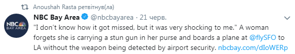 В США женщина случайно пронесла в самолет электрошоковый пистолет
