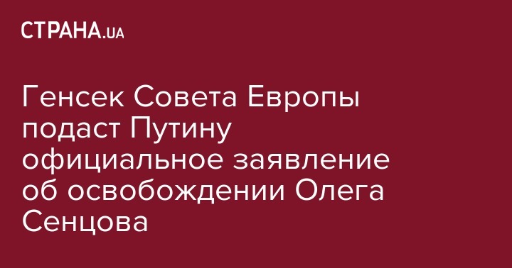 Судьба осужденного в России украинского режиссера Олега Сенцова (который сам отказался просить Путина о помилованиии - Прим.Ред.) в центре внимания высшего политического руководства Совета Европы. Генеральный секретарь организации Турбьерн Ягланд в понедельник, 25 июня, подаст официальную просьбу к президенту России Владимиру Путину о помиловании Олега Сенцова, который отбывает наказание в российской колонии.