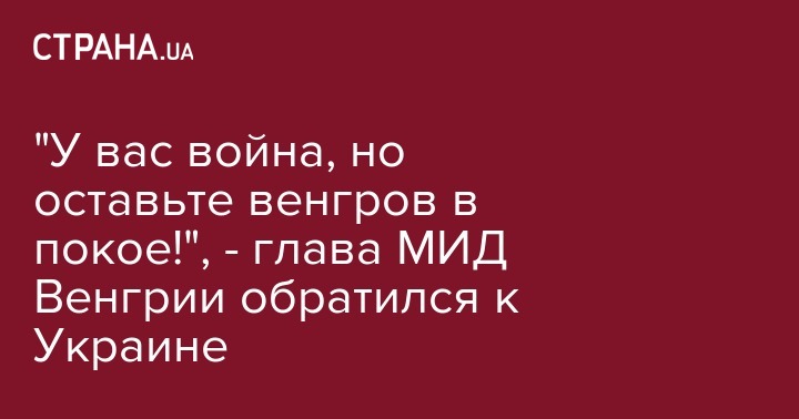 "Ну, у вас война, но оставьте венгров в покое. Мне кажется, что это очень плохо, что вы обвиняете венгров, или обижаете венгров из-за того, что у вас война с Россией", - добавил Сиярто.