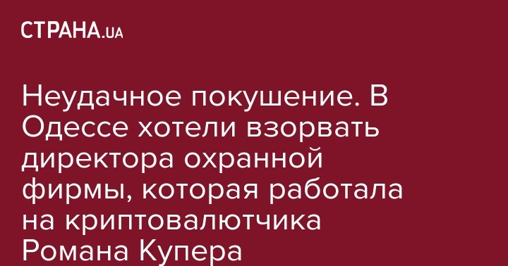 Неудачное покушение. В Одессе хотели взорвать директора охранной фирмы, которая работала на криптовалютчика Романа Купера
