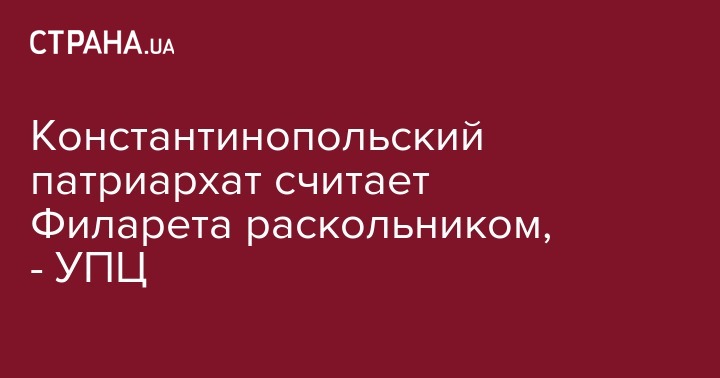 Константинопольский патриархат расценивает бывшего митрополита УПЦ Филарета, который сейчас возглавляет Киевский патриархат, как человека, совершившего церковный раскол.