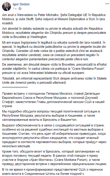 При это он уточнил, что об этом решении проинформировал представителя посольства США в Кишиневе Джулию Стаффт.
