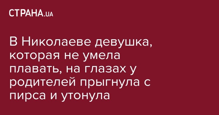 В Николаеве девушка, которая не умела плавать, на глазах у родителей прыгнула с пирса и утонула