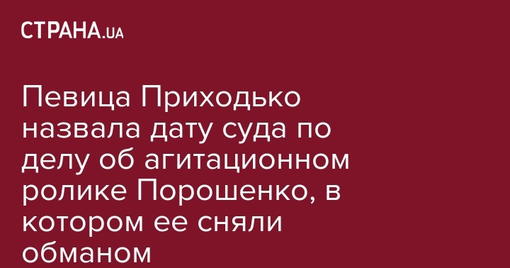 Певица Приходько назвала дату суда по делу об агитационном ролике Порошенко, в котором ее сняли обманом