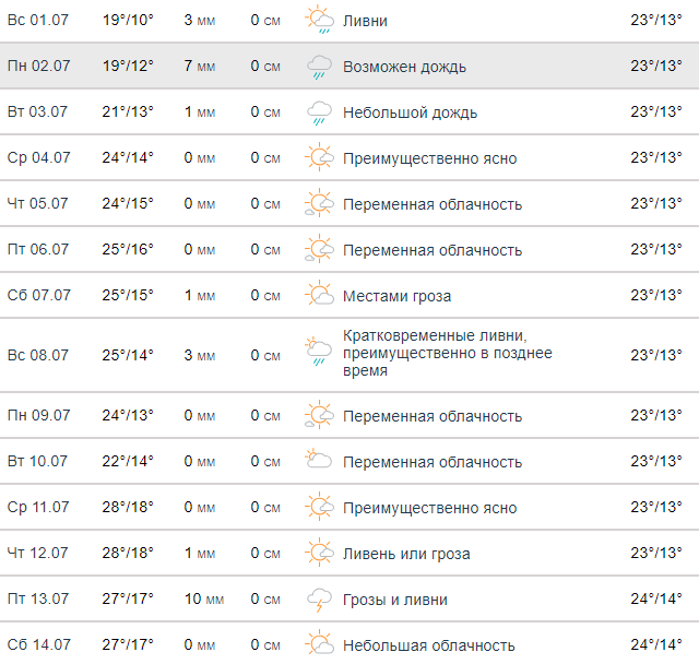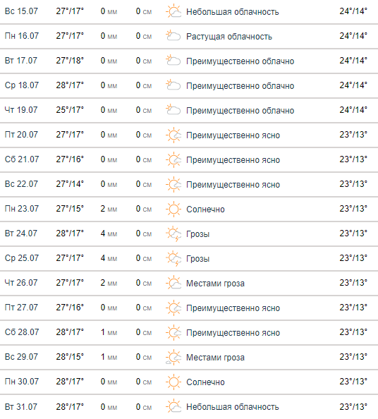 Впрочем, по версии этого сайта, ни разу в самый жаркий месяц года мы не увидим даже 30 градусов.
