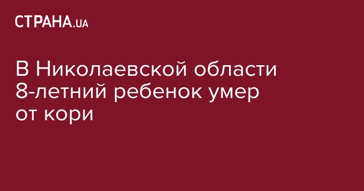 "За отчетную неделю от кори умер 8-летний ребенок в Николаевской области. Всего с начала года от осложнений кори умерло двенадцать человек: восемь детей и четверо взрослых", - сообщается со ссылкой на оперативные данные Центра общественного здоровья Минздрава.