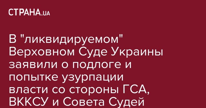 В то же время, 21 июня на портале профильного юридического издания "Судебно-юридическая газета" было опубликовано объявление о начале ликвидации Верхвного Суда Украины как юридического лица с отсылкой на сведения Единого госреестра юридических лиц. А 25 июня на страницах издания "Закон и Бизнес" было обнародовано сообщение о том, что решение о приостановлении деятельности ВСУ как юридического лица в процессе ликвидации появилось на сайте Министерства юстиции. Согласно данному сообщению ликвидатором ВСУ назначен Валенин Сердюк, и именно он, как полагают в "старом" Верховном Суде Украины подписал сообщения о начале процедуры ликвидации ВСУ в качестве и.о. главы аппарата учреждения.