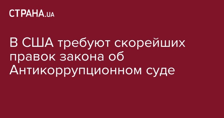 США считают крайне важным принятие изменений в закон об Антикоррупционном суд и призывают украинских нардепов скорее принять такие изменения.
