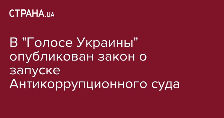 Сегодня, 27 июня закон о создании Высшего Антикоррупционного суда опубликован в парламентском издании "Голос Украины"
