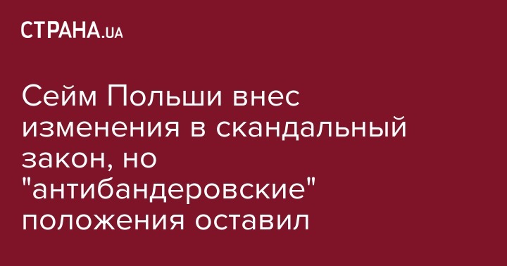 Сейм Польши принял изменения к обновленному закону об Институте национальной памяти, отменив статью, предусматривающую уголовную ответственность за присвоение польскому народу преступлений нацистов. Об этом сообщает TVN24.