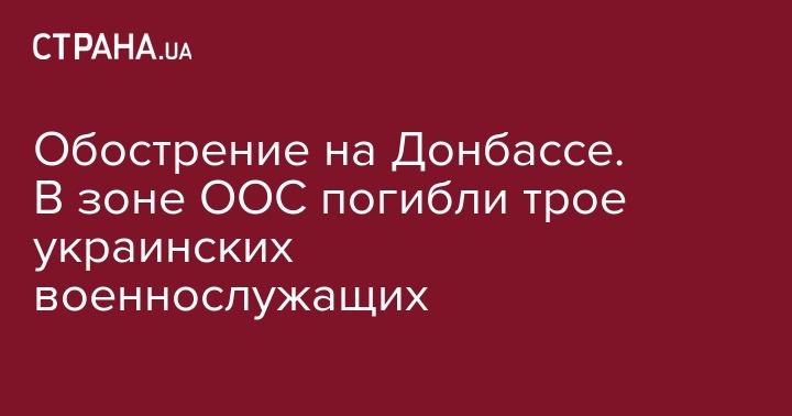 Три украинских военнослужащих погибли на Донбассе в зоне проведения ООС за минувшие сутки 27 июня. Об этом сообщается на странице Операции объединенных сил в Facebook.