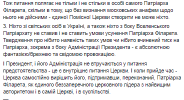 "Без отвержение московской анафемы нет никакого другого способа со стороны Константинополя признать украинских архиереев, которые вне МП (Московский патриархат, - Прим.Ред.). А без признания иерархов и духовенства УПЦ (КП) и УАПЦ - нет смысла говорить об автокефалии, ведь на базе Московского Патриархата Константинополь не может ее провозгласить - поскольку МП в Украине автокефалии в целом, и от Константинополя, в частности - не хочет", - написал представитель УПЦ КП.