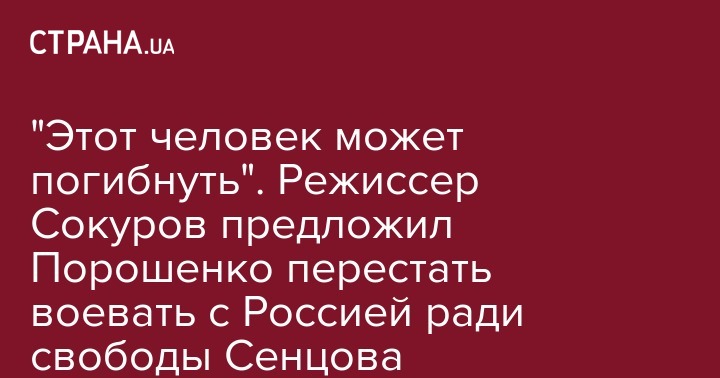 Сокуров также призвал Порошенко отпустить без условий всех удерживаемых в Украине россиян и прекратить конфронтацию, в которой виноваты политики обеих стран.