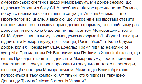 Марчук также вспоминает статью 2 Меморандума, где страны-подписанты обещают удерживаться от силовых действий против Украины.