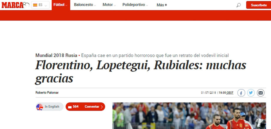 Одно из ведущих изданий, Marca, винит в случившемся целую группу людей. Президента мадридского "Реала" Флорентино Переса автор колонки сравнивает с конокрадом, который вторгся на чужую территорию и увел у сборной тренера, а Хулен Лопетеги, по мнению журналиста, поступил неэтично и недобросовестно. Досталось и руководителю футбольной федерации Испании Луису Рубиалесу, и игрокам команды, которые, по мнению автора, продемонстрировали безразличие.