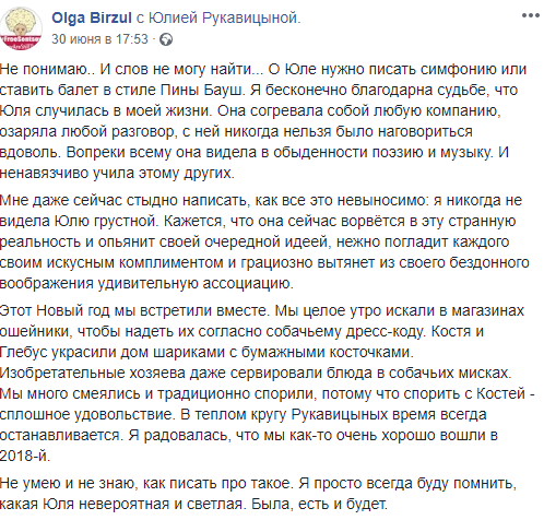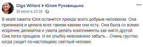 А спустя некоторое время начали появляться сообщения со словами сочуствия из-за смерти Рукавицыной.