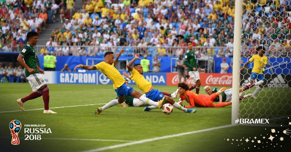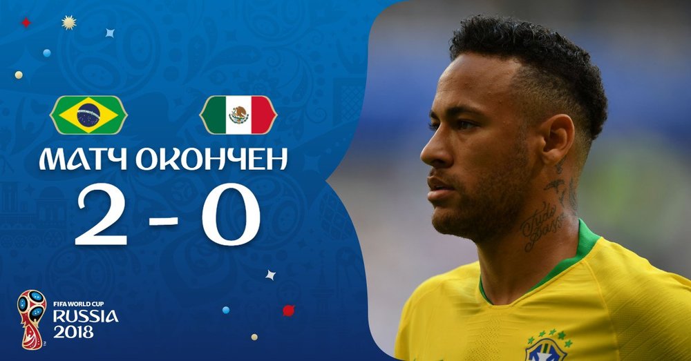 На чемпионате мира по футболу завершился матч 1/8 финала турнира Бразилия - Мексика, в котором уверенную победу добыли пентакампеоны - 2:0.