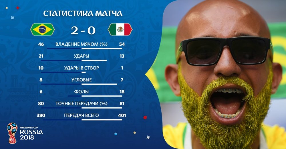 Уверенная, достаточно спокойная победа сборной Бразилии. Мексиканцы на 7-м (!) подряд Кубке мира покидают турнир на стадии 1/8 финала. Это мистика какая-то.