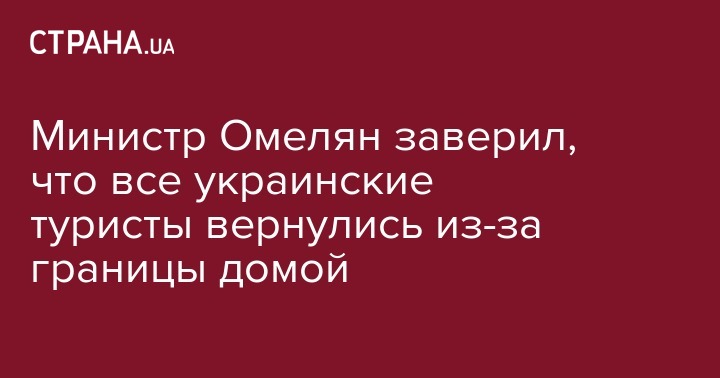 Министр инфраструктуры Владимир Омелян рассказал о возвращении всех застрявших в Тунисе и Албании украинских туристов. Об этом сообщает "112 Украина".