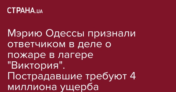 Мэрию Одессы признали ответчиком в деле о пожаре в лагере "Виктория". Пострадавшие требуют 4 миллиона ущерба