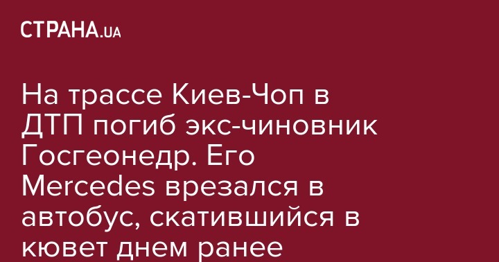 Как сообщает УНИАН, погибшим является бывший заместитель председателя Государственной службы геологии и недр Украины Сергей Радованов. Полиция открыла уголовное производство по ч. 1 ст. 286 Уголовного кодекса Украины.