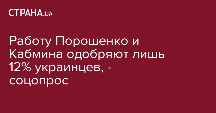 Центр социальных исследований "София" провел опрос о работе президента Петра Порошенко и Кабмина. Выяснилось, что 78,3% опрошенных центром не одобряют работу президента, а 70,2% - Кабинета Министров.