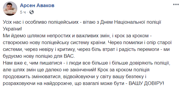 Более многословен был глава МВД Арсен Аваков. Он написал пост на украинском языке: