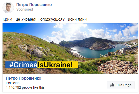В социальных сетях начали обсуждать рекламу Петра Порошенко в Facebook. Во всех рекламных публикациях страница президента призывает ставить ей лайк.