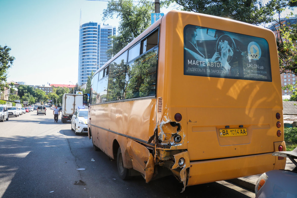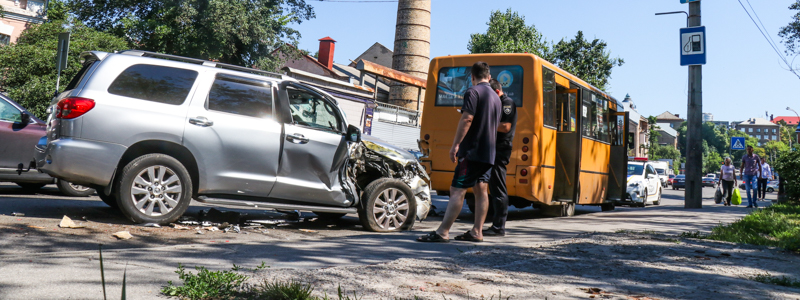 Автомобиль Toyota Sequoia ехал в сторону бульвара Леси Украинки и на скорости врезался в маршрутку сзади. В это время из пассажирского микроавтобуса выходили люди.