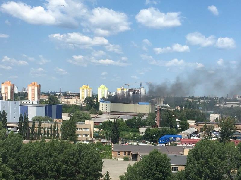 Сегодня, 5 июля, в Киеве по адресу бульвар Вацлава Гавела, 24 на Борщаговке вспыхнул сильный пожар. Загорелось четырехэтажное здание комбината "Прогресс". Клубы черного дыма окутали все вокруг. Площадь пожара - около 700 квадратных метров. Предварительно, горит крыша.