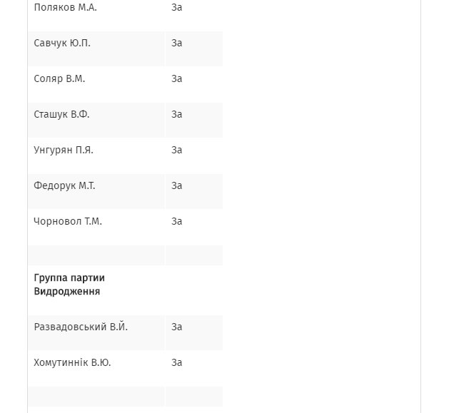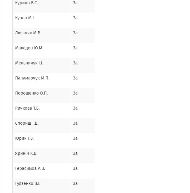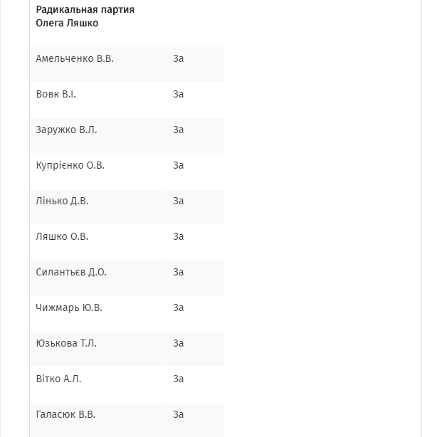 Уточняется, что законопроект  поддержали 74 депутата от БПП, 58 депутатов от НФ и 21 депутат из фракции Радикальной партии Олега Ляшко.