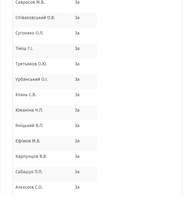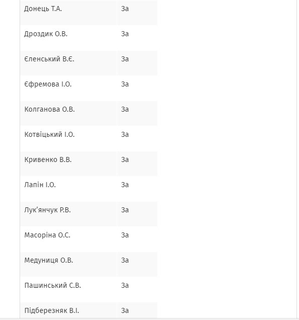 А вот не голосовали автор законопроекта Иван Винник (фракция БПП), а также депутат от "Народного фронта", председатель комитета по вопросам свободы слова и информационной политики Виктория Сюмар.
