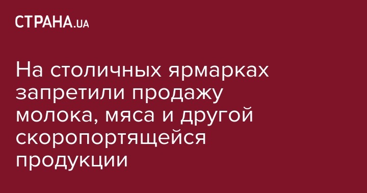 В Киеве временно запретили продажу скоропортящейся продукции на городским ярмарках. "Временно запрещена реализация пищевых продуктов, которые быстро портятся, на сельскохозяйственных и сезонных ярмарках в Киеве. Такое решение принято сегодня на совещании по организации и проведению сезонных и сельскохозяйственных ярмарок, сообщили в Департаменте промышленности и развития предпринимательства КГГА", - говорится в сообщении.