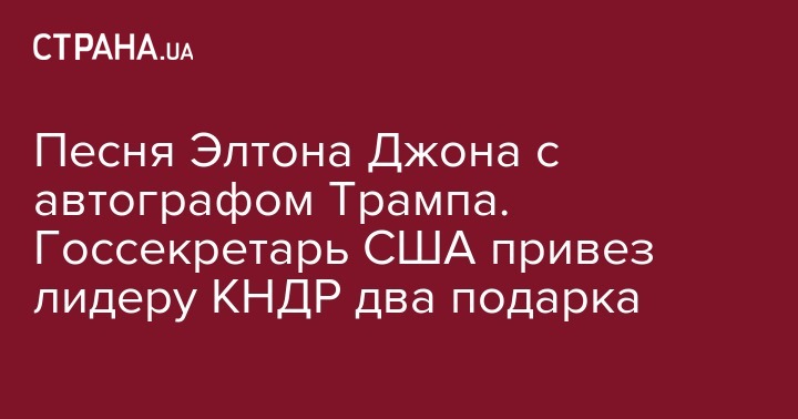 Государственный секретарь США Майк Помпео, привез в КНДР лидеру страны Ким Чен Ыну подарок - диск с песней Элтона Джона Rocket Man ("Человек-ракета").