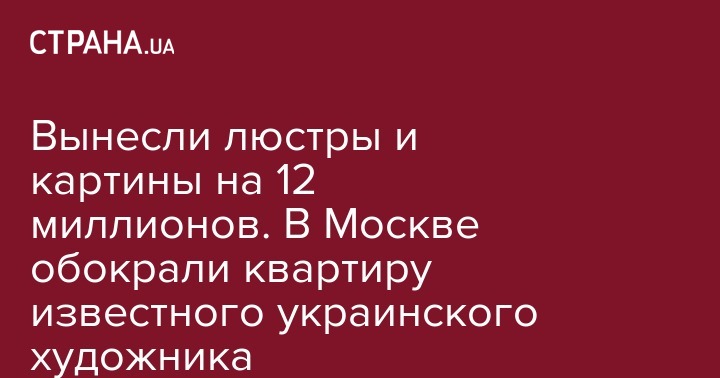 Вынесли люстры и картины на 12 миллионов. В Москве обокрали квартиру известного украинского художника