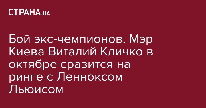 Бой экс-чемпионов. Мэр Киева Виталий Кличко в октябре сразится на ринге с Ленноксом Льюисом