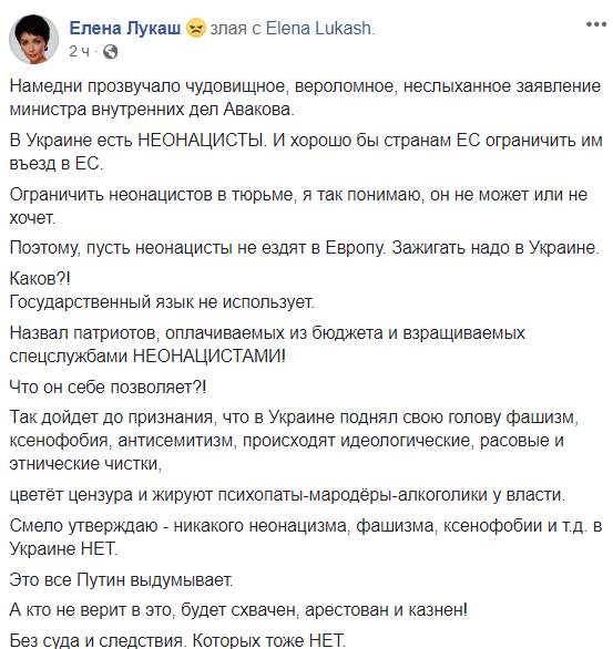 "Намедни прозвучало чудовищное, вероломное, неслыханное заявление министра внутренних дел Авакова.