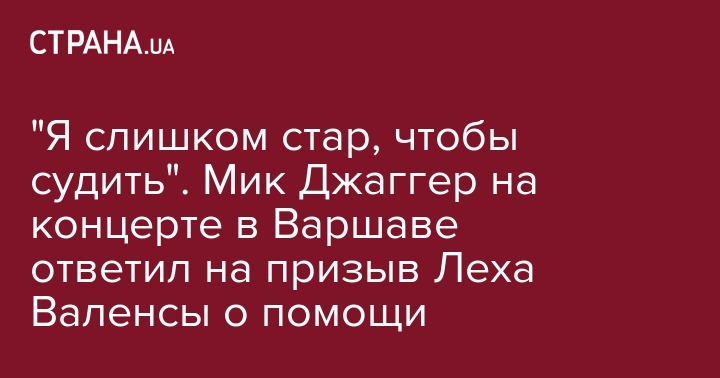 Вокалист The Rolling Stones Мик Джаггер ответил на просьбу экс-президента Польши Леха Валенса поддержать протестные акции против судебных реформ.