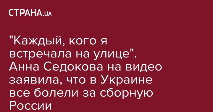 Украинская певица Анна Седокова в эфире российского телеканала заявила, что в Украине все поддерживали сборную РФ по футболу. Видео ее выступления выложили в соцсети.