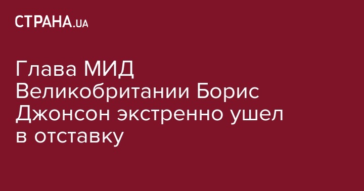 Министр иностранных дел Великобритании Борис Джонсон подал в отставку. Он стал третьим членом кабинета премьера Терезы Мэй, покинувших свой пост за 24 часа.